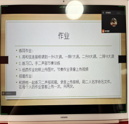 以《舞蹈》为代表的技能类线上课程授课情况:由于排练被封在校内的杜泽辉老师,只能用手机开展网课,但是各项课程要求不减,学生积极配合,利用有限条件完成教学任务。