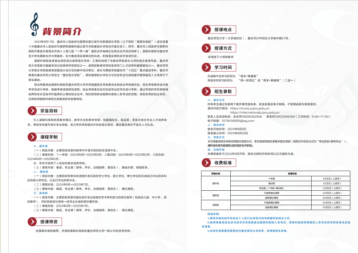 莫斯科国立柴可夫斯基音乐学院 重庆师范大学 联合预备班招生简章2024