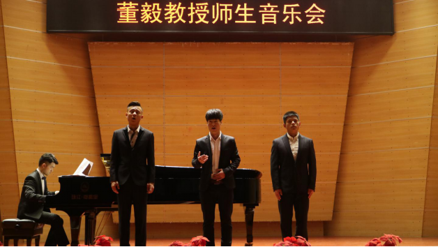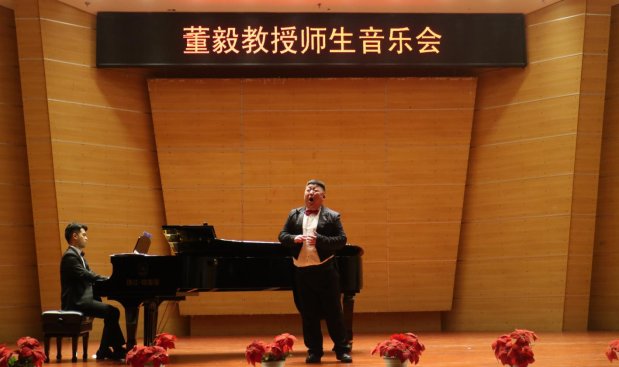 音乐会最后在董毅教授与全体参演学生共同演唱的《告别时刻》中拉下帷幕,将整场音乐会推向了高潮,音乐厅又一次响热烈的的掌声。演出结束后,董毅教师还对每位同学的表现给予了肯定,并感谢了三位钢琴伴奏。到此,董毅教授师生音乐会圆满结束。