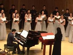 唱音乐,通过讲解,她对每一首合唱作品都进行了导赏。中场时音乐学院青年教师贺露曦作为钢琴艺术指导教师,也从伴奏入手,教大家通过伴奏去进一步欣赏合唱。