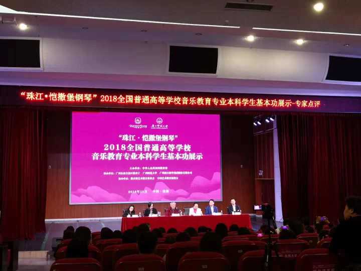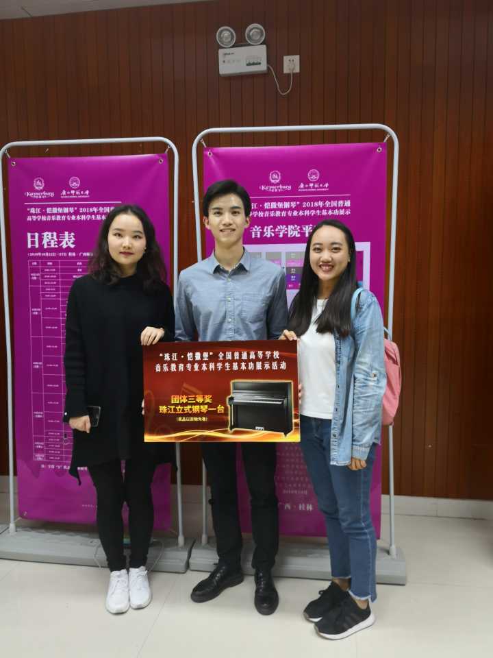 由教育部主办的“珠江﹒恺撒堡钢琴”2018年全国普通高校音乐教育专业本科学生基本功展示活动,从10月23日起至26日在广西师范大学顺利开展,我院选派三名同学参加了此项活动。有来自全国如 “沈阳音乐学院”、“浙江音乐学院”、“吉林艺术学院”等专业音乐院校及“首都师大”、“东北师大”、“南京师大”、“福建师大”等部属重点师范大学等共六十所高校的180名选手参加。分别就歌唱与钢琴伴奏、自弹自唱、微课(这三项是各参展高校三位同学均须参加的)、中外乐器、合唱指挥、舞蹈(三位同学分别参加其中一项)等六个项目进行了紧张的角逐,我院获得团体三等奖。其中,尚磊铜同学获全能二等奖,王小玥同学获全能三等奖及舞蹈单项奖,谭川妍同学获全能三等奖,在参赛的六十个院校中整体排名第十七位。本次活动在多个项目的展示,很大程度上反映了教育部对音乐教育专业本科学生的培养目标和毕业要求的基本定位,也反映了对音乐教师素质结构的基本要求。学院高度重视本项活动,成立了工作小组、制定了工作方案并进行了精心的准备,老师们不辞辛劳,牺牲暑假为学生辅导,参展同学也尽了最大的努力,短短的两三个月时间,同学们专业进步明显、收获很大,同时也越发的成熟和懂事,在展示过程中表现出了应有的风采,发挥出了真实水平。当然,取得的成绩只能说明过去,今后还应加倍努力,更上一个台阶。