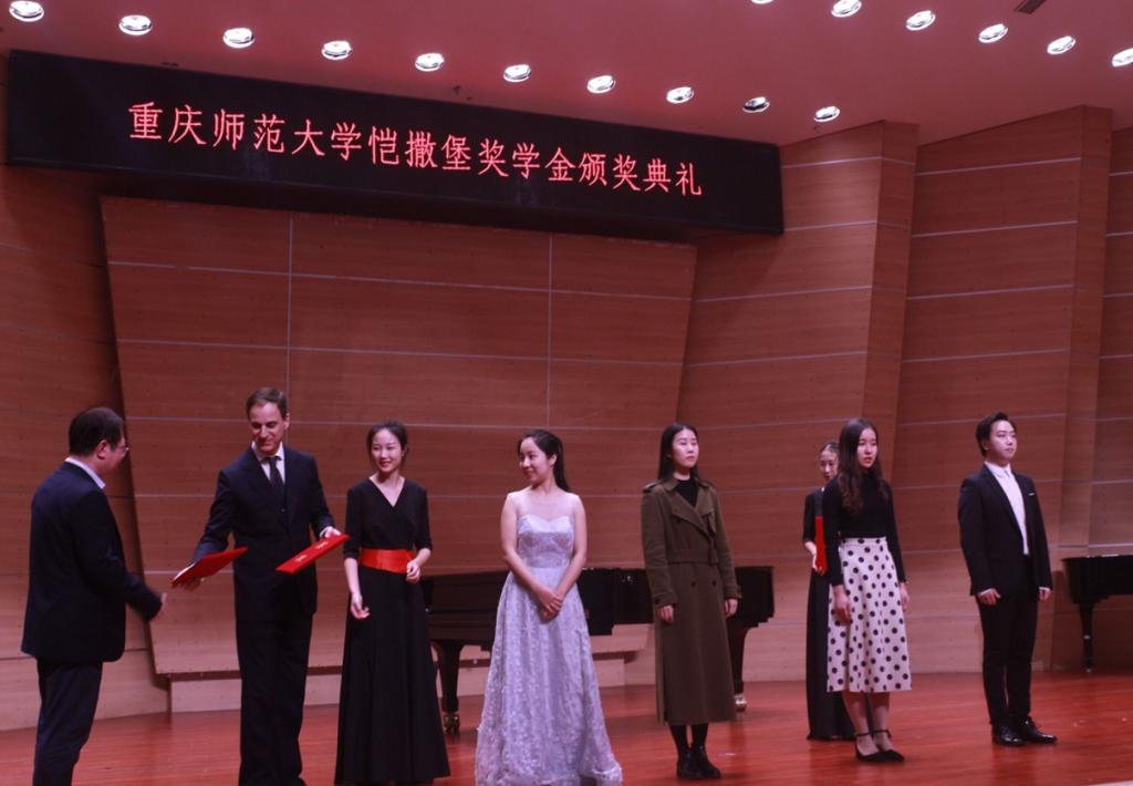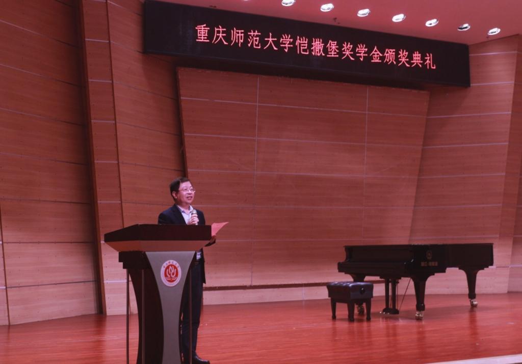 重庆师范大学与珠江钢琴集团结缘与2014年,2016年重庆师范大学恺撒堡奖学金正式签订并进行了首次颁奖。此次典礼为2017-2018学年重庆师范大学恺撒堡奖学金的颁奖典礼。典礼开始,重庆师范大学纪委书记肖应红教授代表学校欢迎与会的嘉宾,并感谢珠江钢琴集团多年来对学校的关注和支持。他说,重庆师范大学经过60余年来的磨砺,形成了完备的教师教育体系,构建了师范教育和非师范教育“两轮驱动”,师范教育中基础教育、职业教育和汉语国际教育“三驾马车”并驾齐驱,非师范教育中文化传承与创新、决策咨询与公共服务、科技攻关与应用转化“三大板块”协同发展的“二三三”特色办学格局,办学实力显著增强,社会声誉明显提升。音乐学院虽然年轻,却发展非常迅速。不仅形成了涵盖音乐学、音乐表演、舞蹈学、舞蹈表演四个本科专业及方向以及音乐与舞蹈一级学科、艺术硕士、教育硕士、在职硕士等多层次学科专业体系,而且全院师生曾获得中国戏剧梅花奖、上海戏剧白玉兰、威尔第国际声乐大赛中国赛区特别演唱奖等国内外重大奖项。他说音乐是最贴近人的心灵的艺术,音乐学院是传播音乐的摇篮,让孩子们从这里成长为一个合格的音乐的传播者!借颁奖典礼的机会不仅表达对珠江钢琴厂的谢意,同样也希望他们能够持续对教育事业提供支持,也希望来临的乔万尼先生能够以引领师范的作用为我们学生提供更好的学习机会。希望我校师生积极参与,认真学习,不断拓宽音乐研究新视野。
