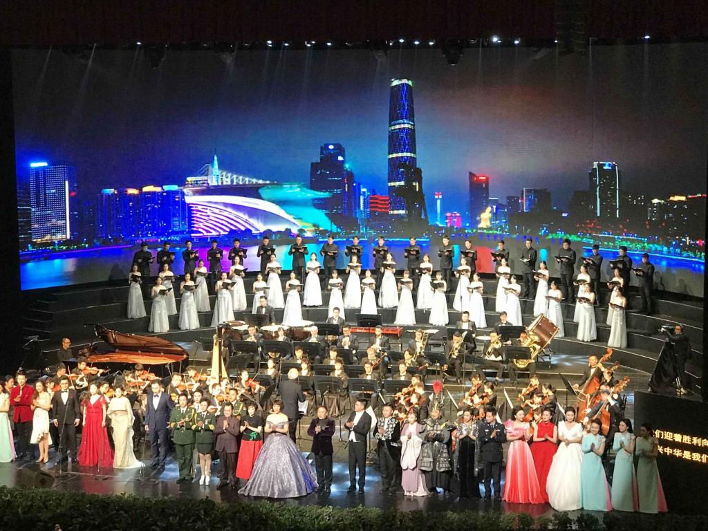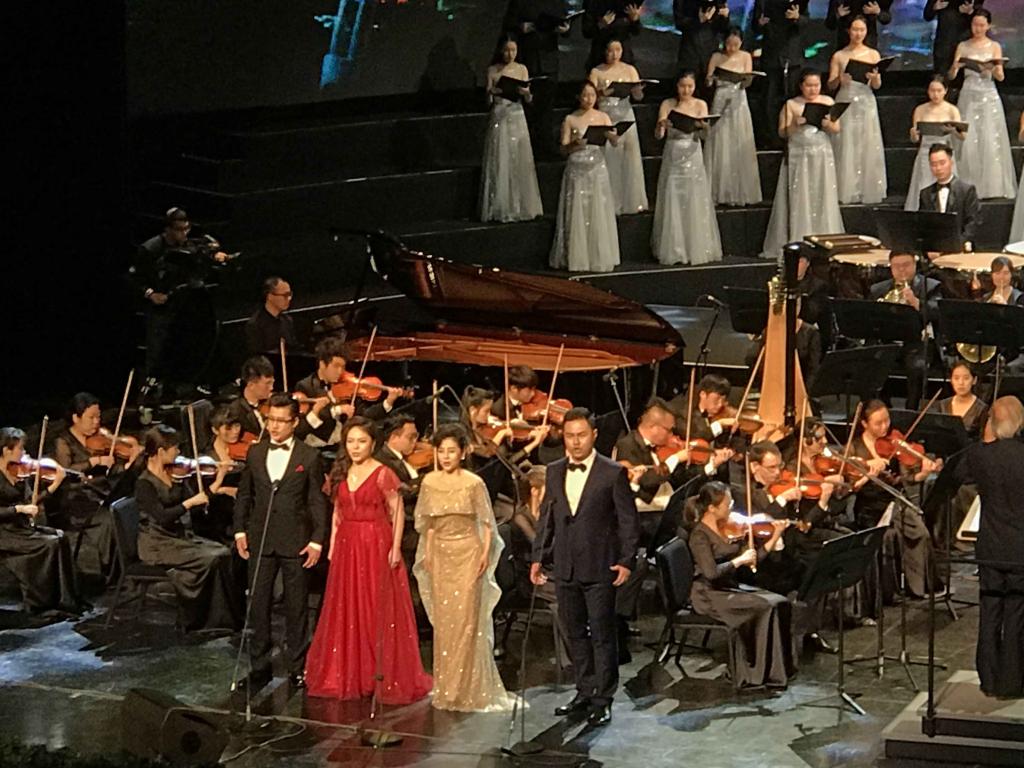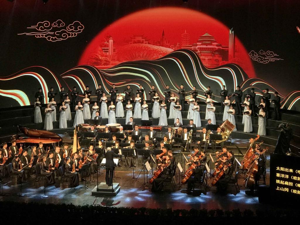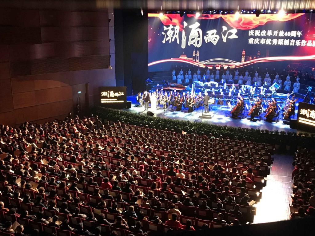 2018年11月28日晚,由重庆市文学艺术界联合会、重庆市音乐家协会联合主办的“潮涌两江——庆祝改革开放四十周年重庆市优秀原创音乐作品展演”在重庆大剧院唱响。该场音乐会以优秀的音乐作品讴歌我市改革开放40年来的奋斗历程和取得的巨大成就,展示重庆市音乐艺术创作的丰硕成果。yl1111永利集团师生频繁出现在大舞台上。著名歌唱家、中国戏剧梅花奖获得者音乐学院院长张礼惠教授演唱的《神女赋》获得全场喝彩;何斌老师、林丹荔老师领唱《走向复兴》将音乐会带向高潮;作曲、配器的王华老师、刘新老师的作品多次出现;重庆师范大学丝路合唱团全程参与合唱及伴唱。此次活动,师生同台,弘扬主旋律,是音乐学院坚持”以本为本推进四个回归“教学成果的集中展示。