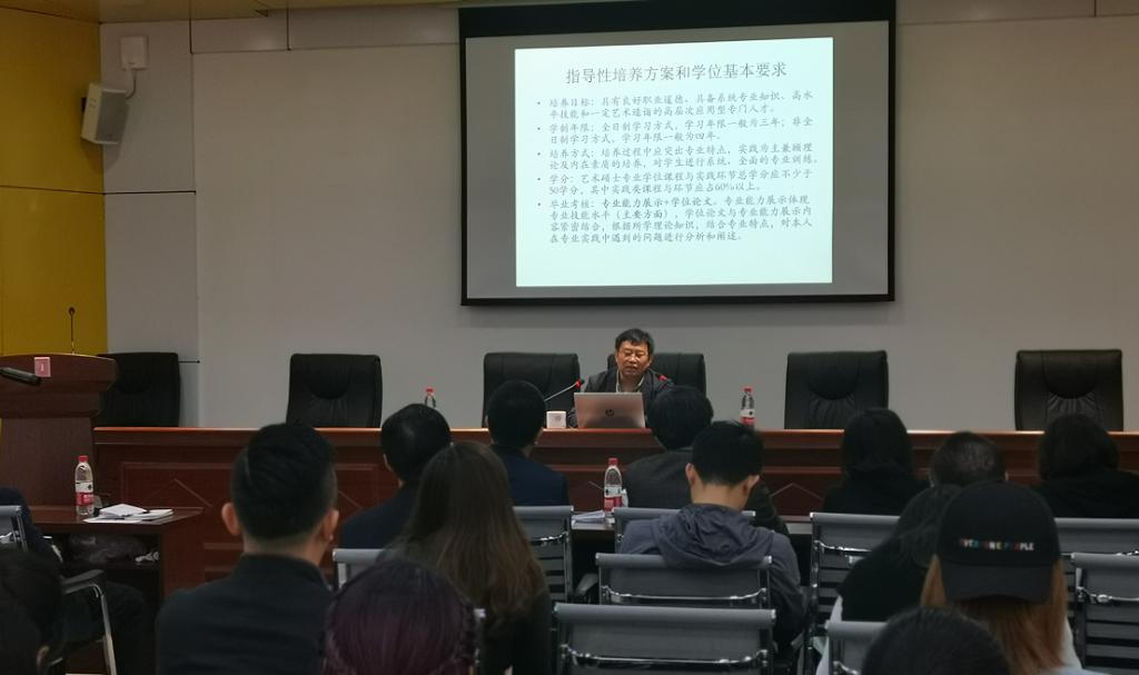 他谈到,艺术硕士是培养具有良好职业道德、具备系统专业知识、高水平技能和一定艺术造诣的高层次应用型专门人才。培养过程中应突出专业学位人才培养特点,凸显实践环节,兼顾理论及内在素质的培养,重视学生综合素养以及系统、全面的专业训练。毕业考核更应该与学术型区别开来,采用“专业能力展示+学位论文”,体现“学、做、研”的有机结合。