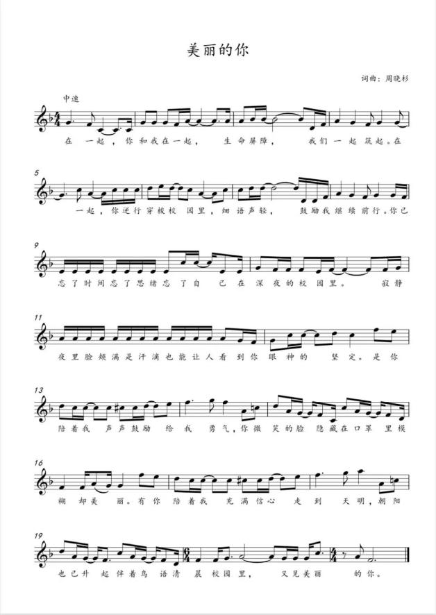 原本想找流行专业的同学进棚录音,从学生的角度来诉说这种感恩之心,没想到录音期间同学们被封控在学校,于是我只好自己去录音。虽然我的歌声不是最专业的,但是我相信,作为创作者,我的一定是用最饱满、最真挚的情感来表达我对“美丽的你”这份感激之情。