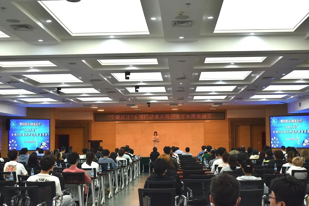 随后,治安支队副支队队长、女警突击队队员苏兰通过真实案例、以案说法,让大家更加深刻地认识到了电信诈骗的的危害性之强,表示要全面提示大学生整体防骗“免疫力”。我校保卫处副处长李鑫也介绍了我校在防诈反诈方面已做出的工作,将会不断完善学校防诈安全体系,切实保障学生电信网络安全。