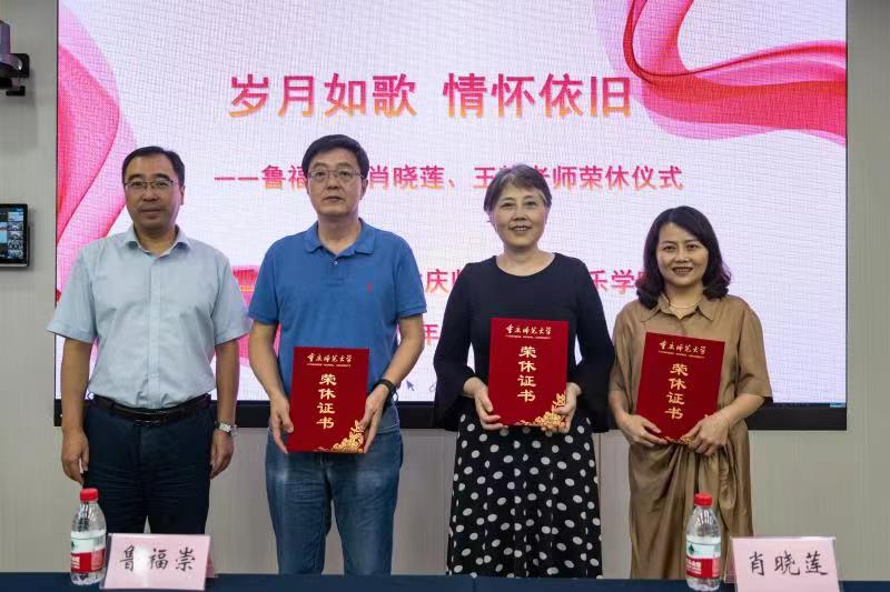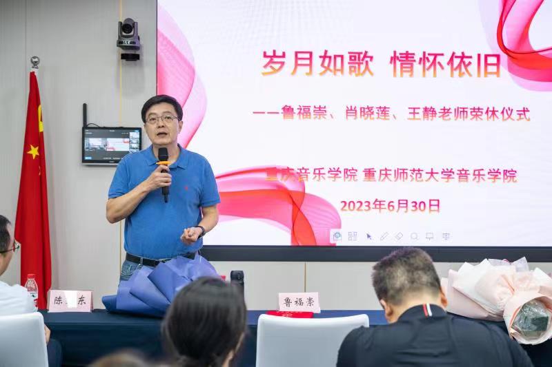 2023年6月30日下午,音乐学院2023年退休干部职工集体荣休仪式在学院201会议室隆重举行。本次集体荣休的三位干部职工是音乐学院原党委书记鲁福崇、肖晓莲教授和王静副教授。学校人事处处长陈进东出席仪式。仪式由音乐学院党委书记曾凡浏主持,音乐学院全院教职工参加。