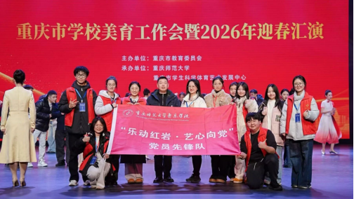 2026年2月3日下午3:30,音乐学院“艺心向党”党员先锋队与学生会成员圆满完成重庆市学校美育工作会暨2026年迎春汇演的志愿服务与演出任务,用青春力量为全市美育盛会筑牢坚实支撑。