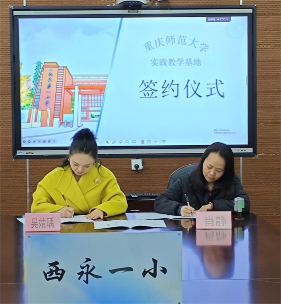 会议最后,在与会人员的共同见证下,吴婧瑀副院长与肖静校长分别代表两校,续签了“重师音乐学院与重庆科学城西永第一小学校实践教学基地协议书”,为下一阶段更深入、更务实的合作奠定了坚实基础。