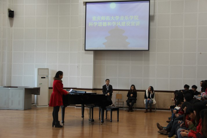 11月7日中午13:00,在余鹏江老师带领下10级师范班、表演班和11级师范班的同学们在艺术大楼8455对科学道德和学风建设的认识进行了交流。