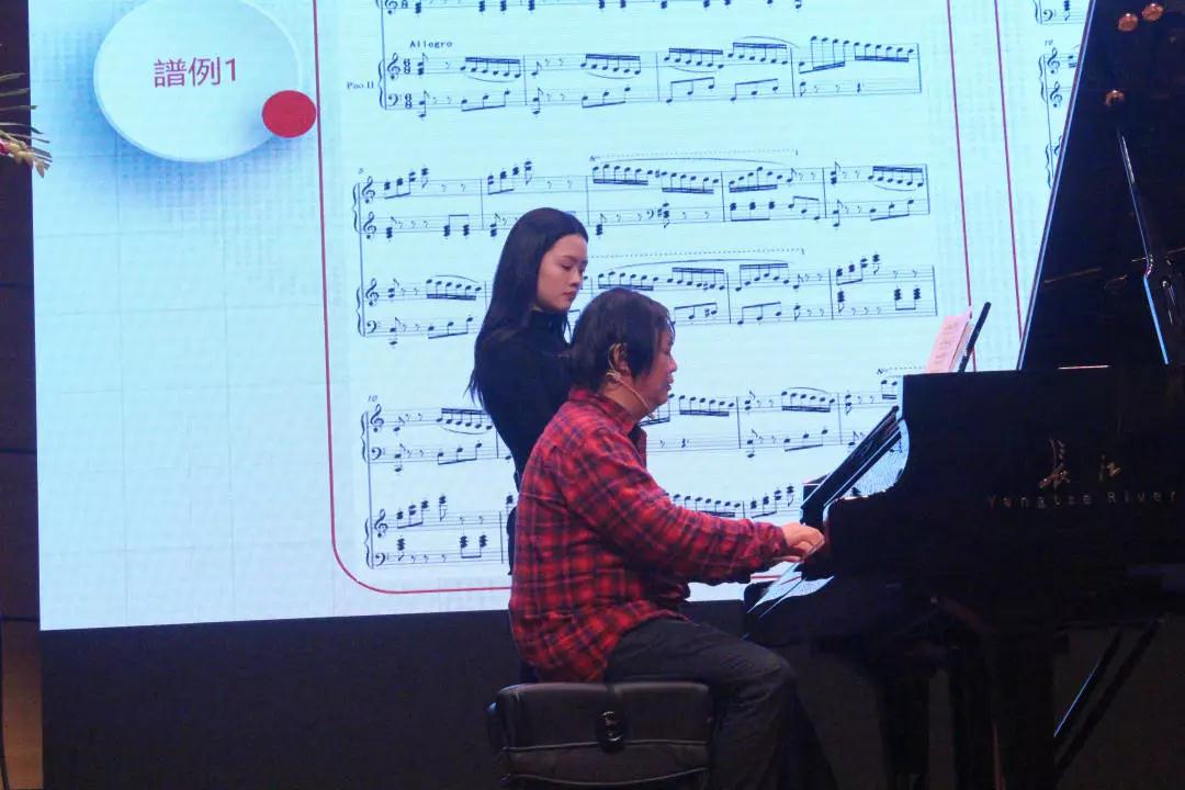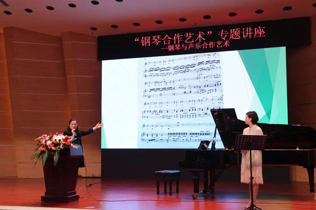 接着,张诗欣博士主讲了“钢琴与声乐合作艺术”,张老师同样采用了演奏与讲解相结合的方式,帮助大家更深入的了解钢琴与声乐合作的方方面面。之后,张老师邀请了我校的一位声乐教师上台,让观众能更加直观的看到钢琴合作者与歌者如何进行相互探讨和相互配合,并且如何能够做到钢琴合作者与歌者之间的平衡,同学和老师们收获颇多。