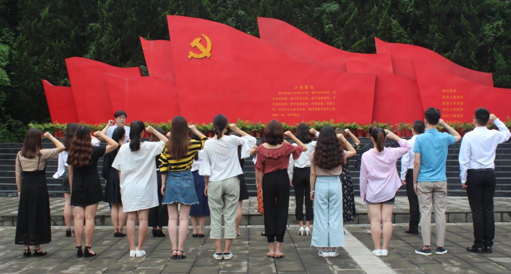 随后鲁福崇书记带领全体人员面对鲜红的宣誓墙进行入党宣誓。
