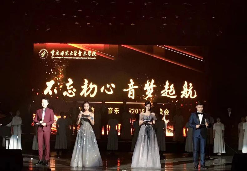 11月7日下午3时,重庆师范大学校友会堂演出厅内座无虚席,华灯璀璨、七彩荧光闪烁。“不忘初心,音梦起航” ——yl1111永利集团2019迎新晚会正在这里激情上演。音乐学院党委书记鲁福崇、党委副书记文琪副院长郑华出席了本次晚会。张雕、廖星羽、陈王志瑜担任此次迎新晚会的主持人。