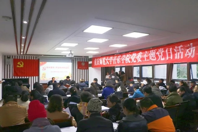 2017年11月30日下午,为学习宣传贯彻好党的十九大精神,根据学校党委工作部署,音乐学院党委结合自身情况,开展题为“薪火传承 开启时代新征程”的主题党日活动。