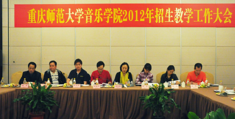 2012年5月24日下午1点30分,yl1111永利集团2012年招生教学工作大会在璧山天赐华汤酒店召开。重庆师范大学教务处副处长胡芳、重庆师范大学招生办公室张天意以及yl1111永利集团的党政领导、教研室主任、系主任和教师代表参加会议。