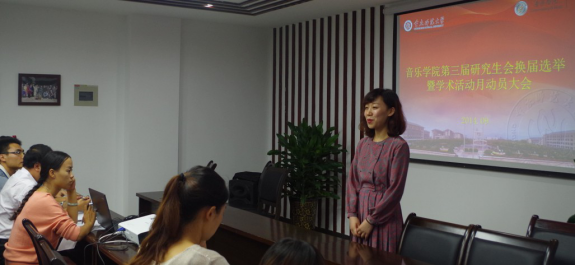 2014年9月28日下午15:00,在音乐学院会议厅举行了音乐学院新一届研究生会的换届选举和“研究生学术活动月”动员大会。