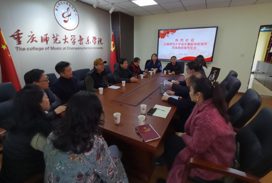 2020年12月8日上午,云南师范大学音乐舞蹈学院熊永翔院长一行7人莅临我院,就学科建设与人才培养、师范专业认证、招生就业和实践教学等工作进行交流座谈。我院鲁福崇书记、孙伟副院长、音乐学系系主任吴靖瑀、音乐学系副系主任龙军、舞蹈系系主任李文婷、声乐教研室主任王守梅、教科办主任崔凤明和团总支书记程小诗参加了此次座谈。