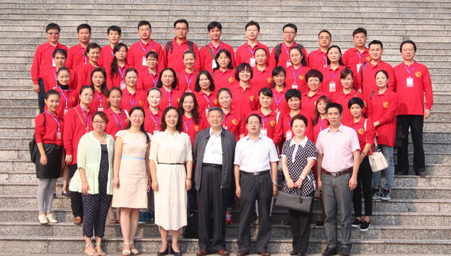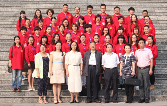 开学典礼结束后,来自全国29个省市自治区、直辖市的50名初中音乐教师和50名全国知名初中音乐教研员在美丽的重庆师范大学图书馆前集体合影留念。
