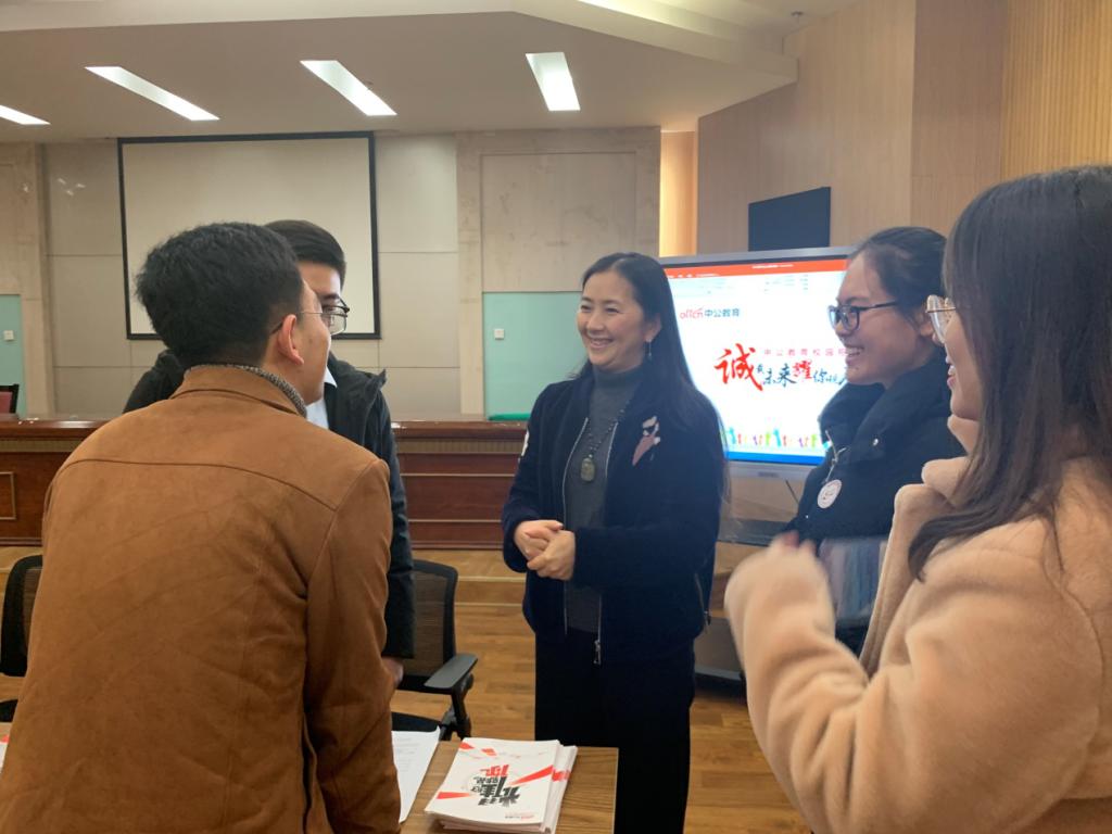 学院领导高度重视毕业生就业工作,招聘会期间,党委副书记文琪携2016级辅导员程小诗老师以及2019级辅导员杨理老师来到招聘会现场与用人单位沟通交流,详细了解用人单位招聘情况和需求,鼓励毕业生主动应聘,现场对学生进行指导。