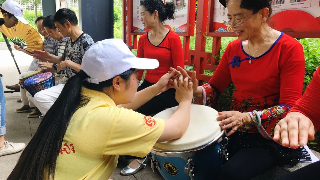 2019年6月20日下午14:00,音乐学院文艺实践服务团来到了花马社区文体活动中心进行青年志愿服务活动。在这里,有一群热情的叔叔阿姨们正等待着来自音乐学院的“小老师”们,而“小老师”们也早已做好准备,迫不及待地想要教给老人们准备好的歌曲、舞蹈和非洲鼓打击知识。