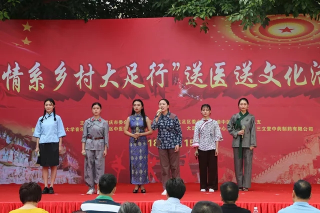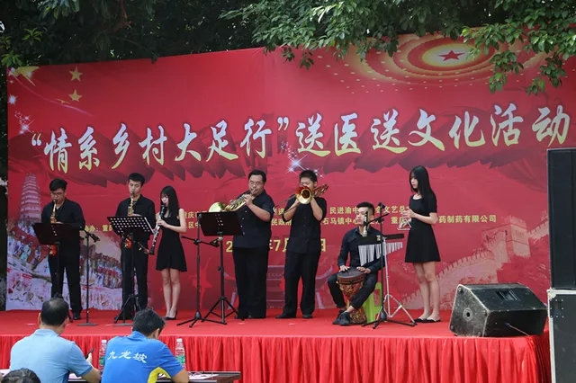 2018年7月15日,yl1111永利集团2018年暑期“三下乡”文化艺术服务团“青春圆舞曲”分队赴大足区石马镇开展“情系乡村大足行”送文艺送医下乡活动,并对群众文艺娱乐活动在社区开展状况进行实地调研。此次活动由yl1111永利集团与民进重庆市委会医疗健康专委会、民进大足区委会、民进渝中区委会文艺总支等团体共同举办,依托音乐学院专业特色及民进重庆医疗健康专委会的医疗资源,将反应新时代风貌、改革开放40年来优秀的文艺作品送到群众面前,将健康医疗服务送到群众中去。