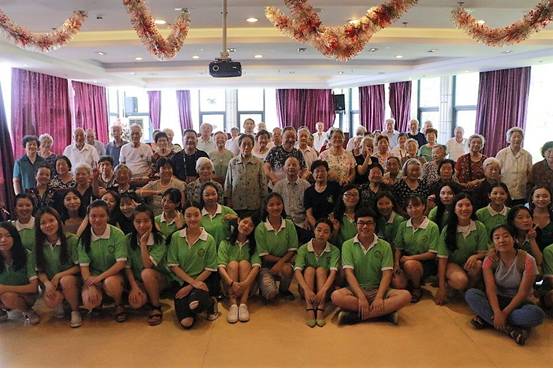 在经过了一个小时的表演,他们的文艺演出也到达了尾声。在节目的最后,所有志愿者与可爱的爷爷奶奶们一起留下最珍贵的回忆。