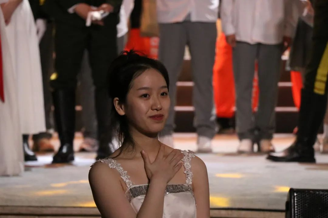 而舞台上演唱的同学们,内心也被歌曲中的力量深深震撼着。表演结束后,2020级音乐学一班的谭欢鹭同学说道:“中国在不断强大不断进步,过程中的这股力量也深深打动了老百姓们,这些珍贵的精神食粮正积极影响着新时代青年们。”