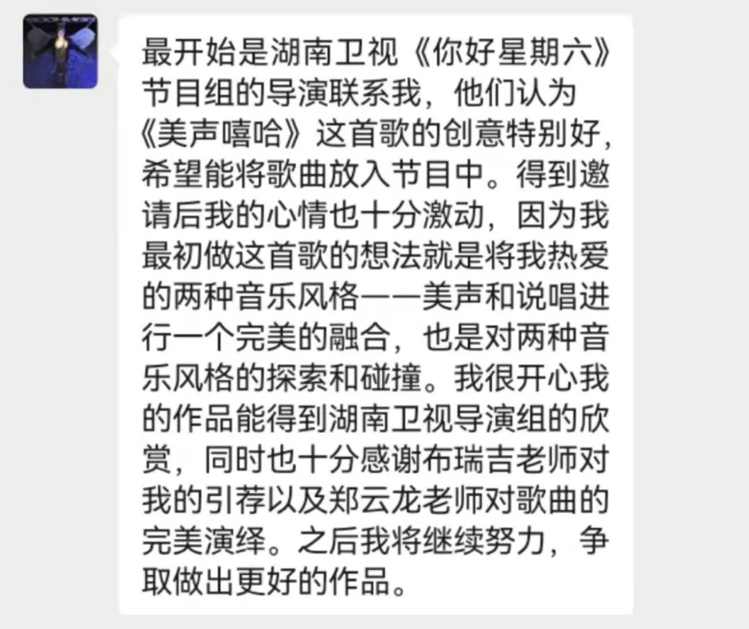 2022年2月12日,音乐学院学子叶书豪的原创歌曲《美声嘻哈》和由他所作词的歌曲《郑式说唱》登上湖南卫视《你好星期六》的舞台,并由歌手郑云龙演唱。