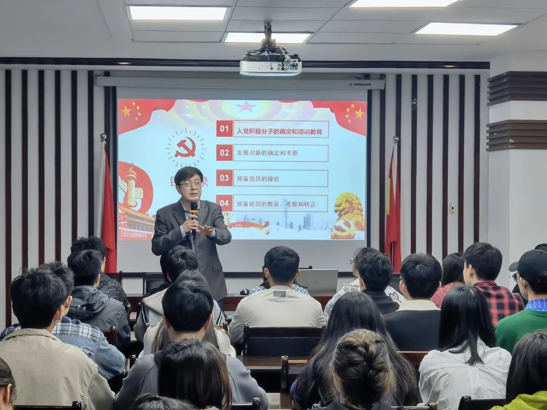 鲁福崇老师从四个方面详细介绍了入党流程:(一)入党积极分子的确定和培养;(二)发展对象的确定和考察;(三)预备党员的接收;(四)预备党员的教育,考察和转正。